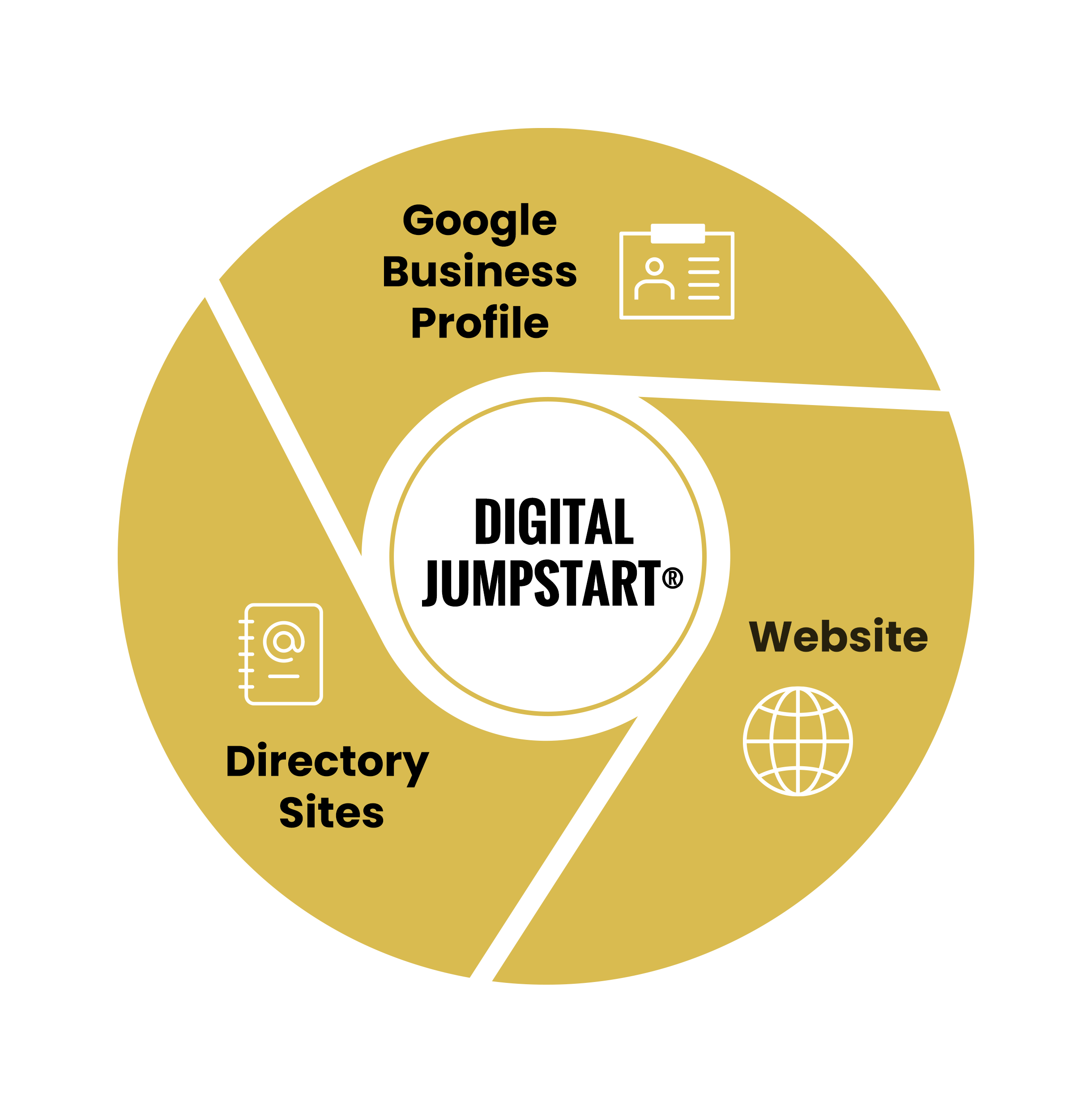 The Digital Jumpstart® Package focuses on 3 services that work synergistically to establish a solid internet marketing foundation.